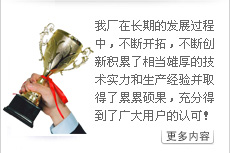 我廠堅持“以質(zhì)量求生存,以品種求發(fā)展,以服務(wù)求信譽”,我們將不斷的努力為石化行業(yè)制造出更多質(zhì)量更好的石化裝備產(chǎn)品。 |